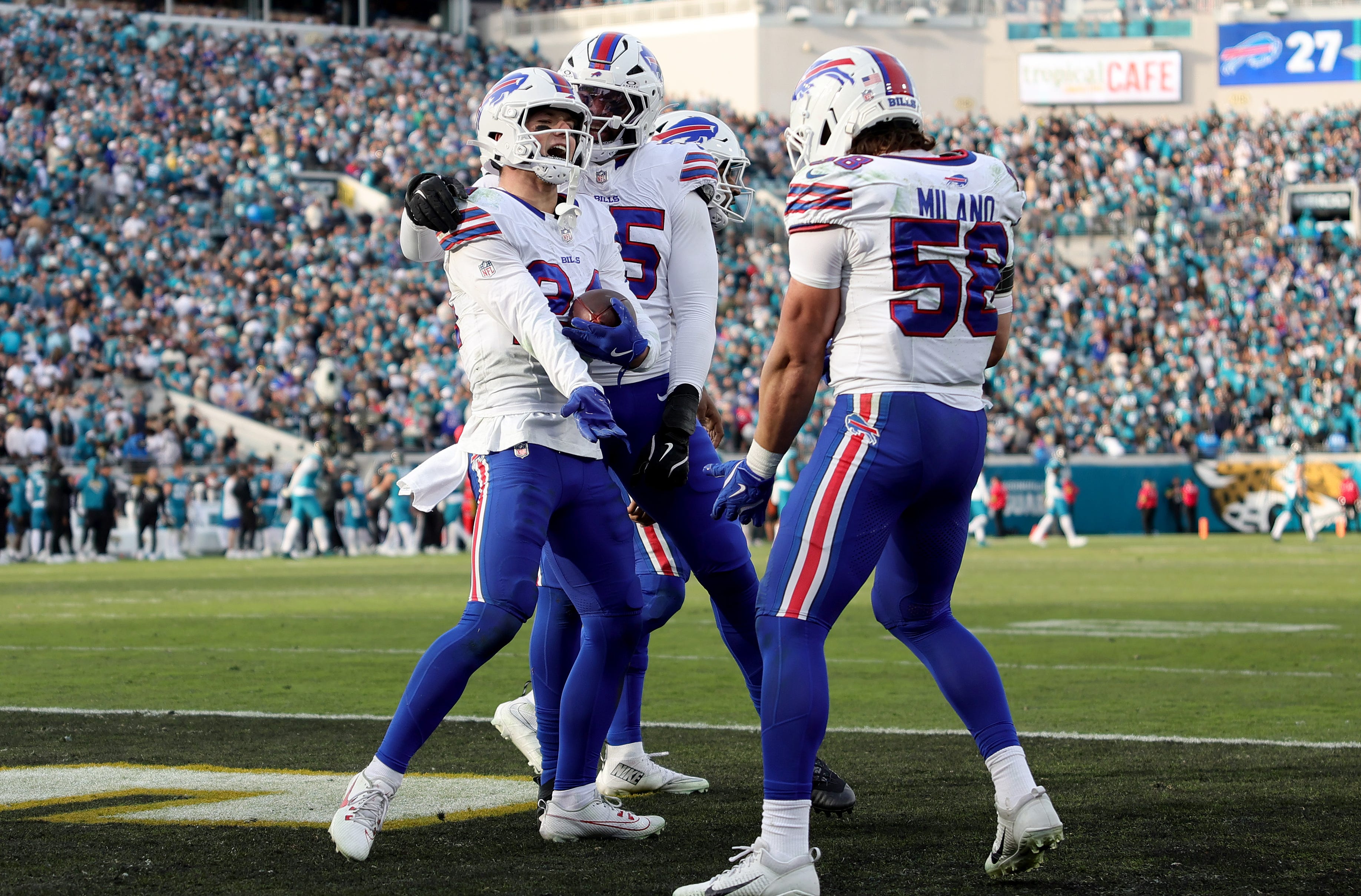 All of those AFC headliners missed the playoffs, of course. Fast forward to the AFC wild card round and the Jacksonville Jaguars had ample time to drive the field and force overtime. Their 22-year-old kicker, Cam Little, has the two longest kicks in NFL history. Three first downs in 59 seconds is easy work in today’s NFL. Instead? Trevor Lawrence tried jamming a ball to wideout Jakobi Meyers in tight coverage, Tre’Davious White got a paw on it and Bishop was Johnny-on-the-Spot for an interception. Game over.
