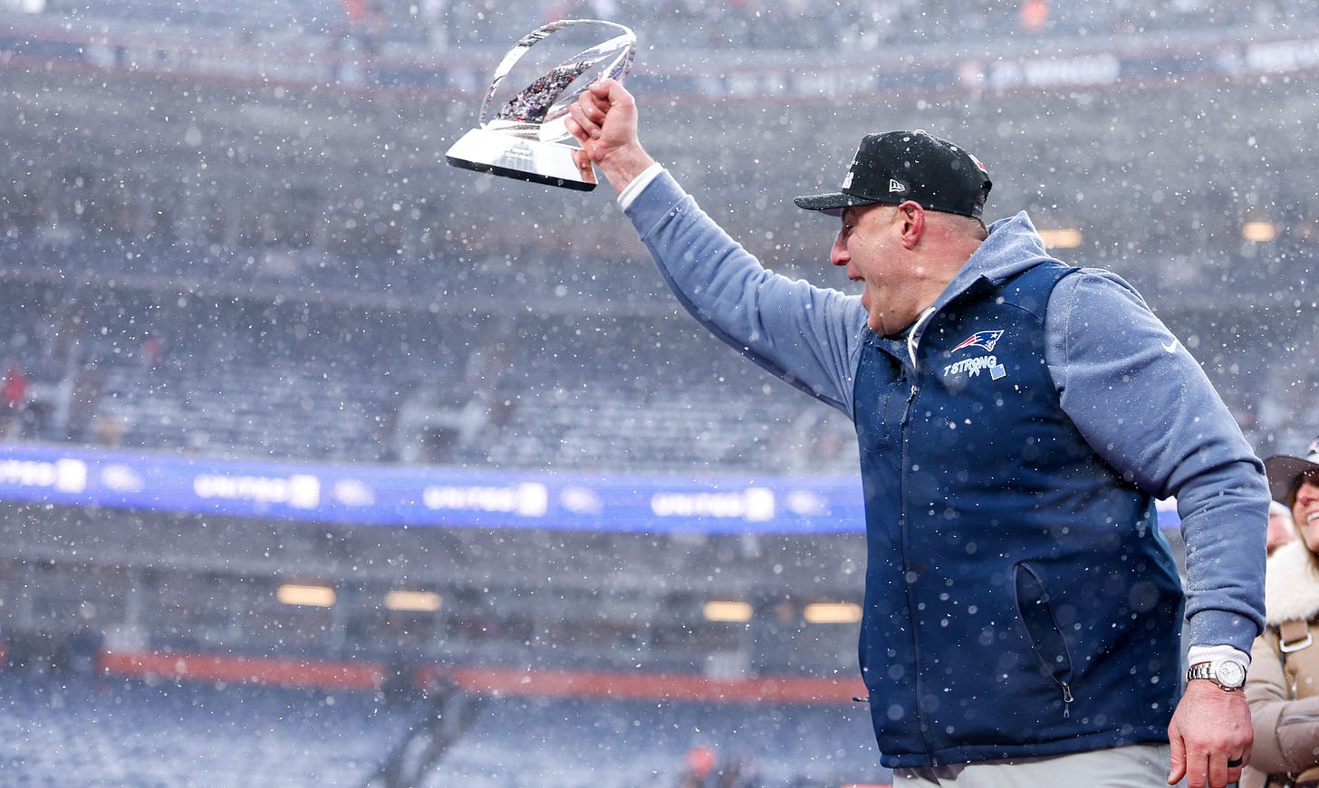 Maye had a feeling Denver would crash hard inside if they all saw the Patriots selling out toward the right. His gamble paid off. Broncos linebacker Jonah Elliss bit just enough and could not redirect in the snow to catch Maye before the sticks. First down. Game over. All a direct reflection of that two-way trust. Vrabel is hard on guys. OC Josh McDaniels can be brutal, too. But that doesn’t mean their players need to play like a bunch of tight robots in the biggest moments.