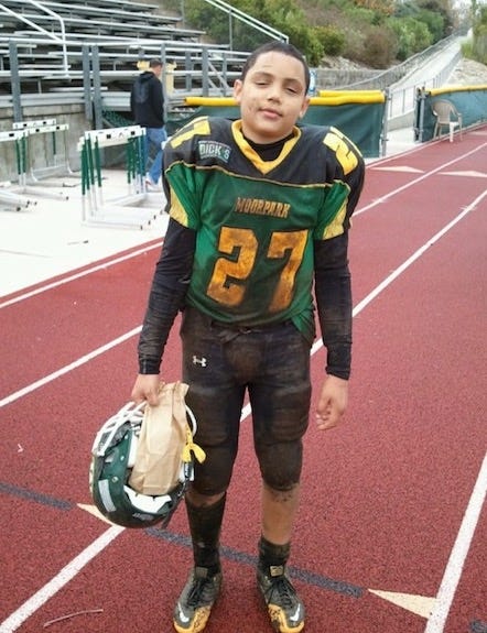 At home, the second Dad pulled into the driveway, there was Drake in the front yard with a water bottle in one hand and cones in the other. Dwan raced into the house, changed into sweats, grabbed his cleats and off to the fields at Moorpark Junior College they went. Every single time, it was Drake asking Dwan to run wind sprints, pull sleds, etc. Never the other way around. Never forced.
