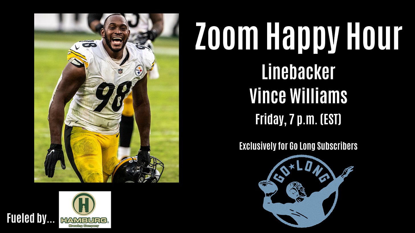 Happy Hour: Linebacker Vince Williams joins Go Long Friday night at 7 p.m. (EST)