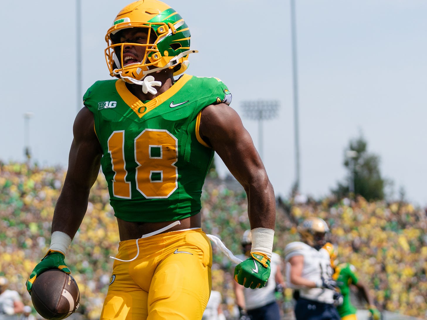 Oregon’s Kenyon Sadiq, whose 4.32 hand-held clocking at the combine was one of the fastest ever by a tight end in the 40-yard dash, leads the way.