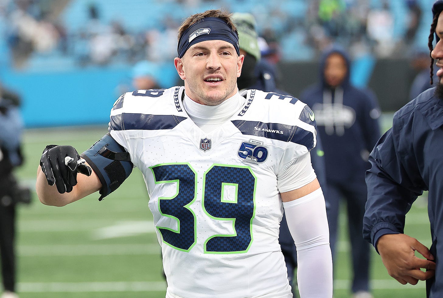The 5-foot-11, 193-pound safety started 11 games for the Seahawks this season with 65 tackles (three for loss), one pick and one fumble recovery. That third-and-17 interception in Washington was a gem, too. Okada leaps high for Jayden Daniels’ desperation heave and taps both feet down on the sideline.