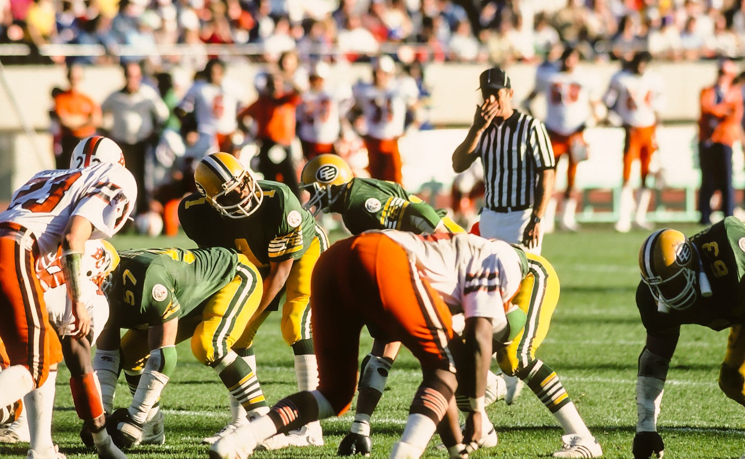 So I’m looking at my opportunities and Canada’s making me an offer where I’d be like a second-round pick money-wise to come up there and play quarterback. And then I’m looking at all these offers in the NFL that weren’t serious about me really being a quarterback. So I had to make a decision whether I’m going to give up my dream of playing the NFL to go somewhere where I’m wanted. That happened to be in another country. So I chose to go there because of my love for the position and because I knew I could play it and there were people that wanted me. I wanted to go wherever I was wanted and the Edmonton Eskimos wanted me. Hugh Campbell, their head coach at the time, felt like I could be a big-time quarterback — not only in the CFL. He felt I could be a big-time quarterback in the NFL. He was wondering why I wasn’t getting more opportunities to the NFL.