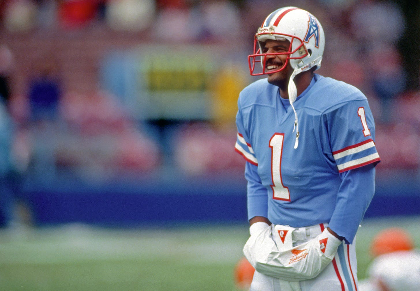 Moon: I got a good opening to see how good I was. I was playing against the world champion Los Angeles Raiders my first game of the season at the Astrodome. And we ended up losing to them (24-14). But I threw two touchdowns that day and I got hit a bunch because they had a hell of a front four and we had a very young offensive line at the time. But I felt like I stood in there and held my own. Even though we didn’t win the football game, I felt like I played decent. After that game I’m like, “Yeah, I think I can play in this league. I’ve played against the best team and did pretty well and I’m still standing.”