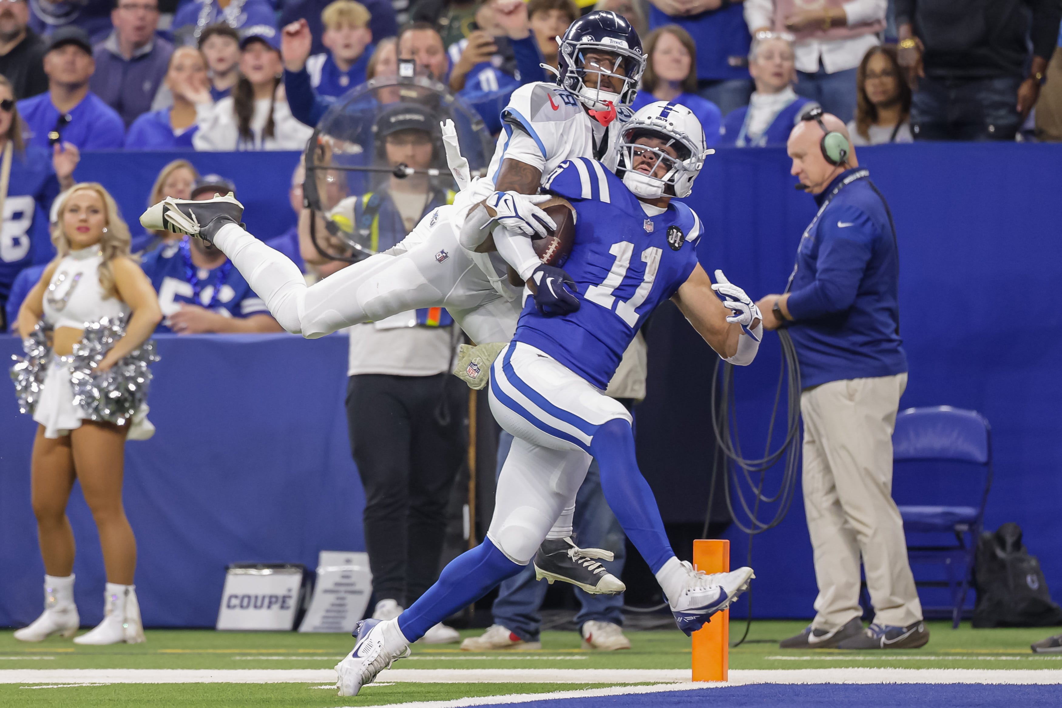 The result is fear. He sees it in your eyes. He sees it in your actions. Once Pittman asserts himself as the apex predator, defenders do not want the smoke. So you can have your bicep-curl touchdowns. These are the plays he loves most. With Jonathan Taylor shifting from third… to fourth… to fifth gear somewhere behind him, Pittman closes in on a defender to throw a shoulder and that player makes a conscious business decision.